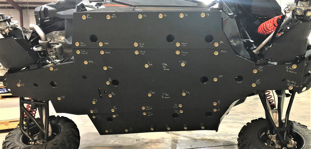 Trail Armor provides superior underbody protection with their full skid plate set designed for 2020–2025 Can Am Maverick Trail, Maverick Sport, and Commander models. Manufactured from 1/2" Super Tough polymer, these skids offer impact resistance without denting or rusting and weigh less than traditional metal skids. Built-in drain holes allow debris to wash away without removing the plates. The modular design covers the entire underside, including front and rear differentials. Extended side panels act as nerf sliders, guarding the vehicle’s sides and rocker panels. Installation hardware and detailed instructions are included. Consult the fitment chart for specific model compatibility. Note: Special order colors are non-cancellable and non-returnable. Please choose either standard (rolls up the sides) or trimmed (extends past rocker panel about 1") sliders.