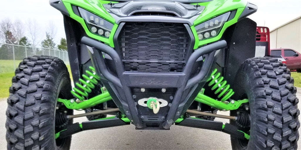 Break bad on the trail, ride the most buggy-busting terrain you can find - Trail Armor's a-arm guards can take the iMPACT! Made of the same 1/2" supertough polymer we make our skid plates out of, these are by far the toughest, best designed and coolest a-arms on the market. Guards have three sided protection of your front CV boots - front, rear and bottom - and mount easily with no drilling required. All mounting hardware and simple photo-documented installation instructions are included. Fits the 2020 - 2025 Kawasaki KRX 1000, KRX 4 1000 all editions - front guards set of 2 only. Trailing Arm Guards sold separately.  Note: Because of limited space, these front guards are not engraved with Trail Armor on the front. This picture is for illustration purposes only of the tri-color effect.    COLORS ARE CONSIDERED A SPECIAL ORDER AND ARE NON-RETURNABLE.  THEY ARE NOT PIGMENT MATCHED TO ANY OEM MANUFACTURER'S COLOR SCHEME.  PLEASE CONTACT US FOR ANY QUESTIONS ON MATCHING OR BLENDING WITH YOUR VEHICLE'S PLASTIC AND/OR GRAPHICS. See ALSO FITS CHART in gallery for specific year models.