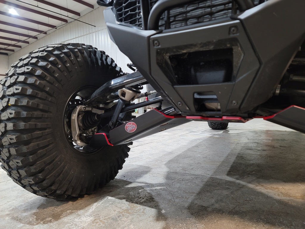 Break bad on the trail, ride the most buggy-busting terrain you can find - Trail Armor's a-arm guards can take the iMPACT! Made of the same 1/2" supertough polymer we make our skid plates out of, these are by far the toughest, best designed and coolest a-arms on the market. Guards have three sided protection of your front CV boots - front, rear and bottom - and mount easily. All mounting hardware and simple photo-documented installation instructions are included. Requires tapping for tek screw to install. Trailing Arm Guards sold separately. See ALSO FITS chart in gallery for specific year and model fitment. Engraving shown on tri-color for illustration purposes only, there is not enough room to engrave on these guards. Colors are considered a special order and are non-returnable.