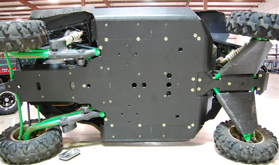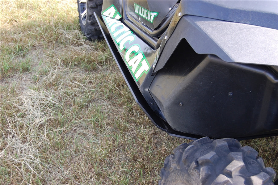 Get the best in under vehicle protection with Trail Armor's full skids for the 2013 - 2018 Arctic Cat Wildcat 1000, Wildcat X, Wildcat X Limited, Wildcat 1000 Limited. Made from a 1/2" supertough polymer, these plastic skids absorb shock to the bottom of the vehicle with no dents or rust and are lighter than traditional metal skids. Strategically placed drain holes allow dirt and debris to wash out - you don't have to remove them to clean out the belly of your vehicle. Easy to install, jointed sections cover the full length and breadth of the vehicle - including the front and rear differential- and provide the most coverage of any skids on the market (see pictures and compare). Additionally, integrated (not an add on) slider nerfs provide that needed protection for your the side and the bottom of your rocker panels and have formed leading edges - instead of square edges like some other skids out there - to better deflect hits on the trail and keep you from getting hung up (see pictures and compare). Works with Arctic Cat front and rear bumpers. Ships UPS ground - no freight line required! Mounting hardware and instructions included. Front a-arm guards shown in picture not included with this kit.
