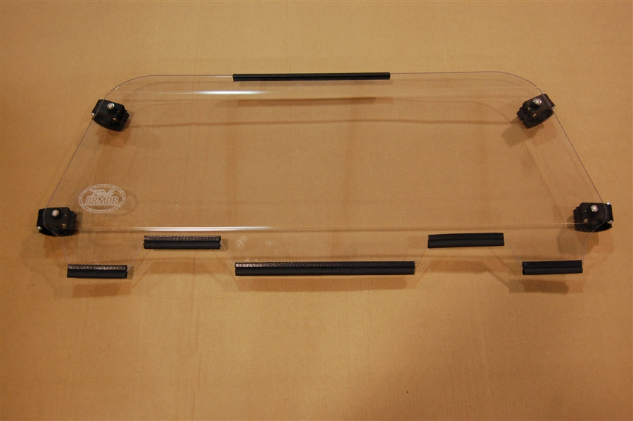 Trail Armor’s Rear Window Dust Shield kit provides the most effective barrier for keeping cargo, dust and debris out of the cab of your 2014 - 2017 Arctic Cat Wildcat Trail. The upper rear windshield is made from ¼” thick (not 3/16” or 1/8”) clear polycarbonate, making it the strongest and most durable rear window on the market. Unlike some of the other rear windows on the market, Trail Armor’s Rear Window Dust Shield has a UV protective coating on the exterior of the window to inhibit yellowing. Additionally, instead of just fitting between the roll cage bars (leaving sizable gaps between the shield and the bars), Trail Armor’s Rear Window Dust Shield kit overlays the roll cage bars for a professional, tight fit as a cab back – essential when used as part of a full cab enclosure for those winter rides - and will not interfere with hard or soft tops. Strategically placed bulb seal limits vibration and rattling on the trail. Rear window does not interfere with bed function. Like all Trail Armor windshields, skids and debris shields, this Rear Window Dust Shield is cut with a CNC 5-axis router to ensure a smooth-edged, accurately cut product every time. Trail Armor’s Rear Window Dust Shield Kit for the Arctic Cat Wildcat Trail is easy to install and features Trail Armor's new fast clamps for easy on and off. Kit comes with all mounting hardware and detailed, photo-documented instructions.