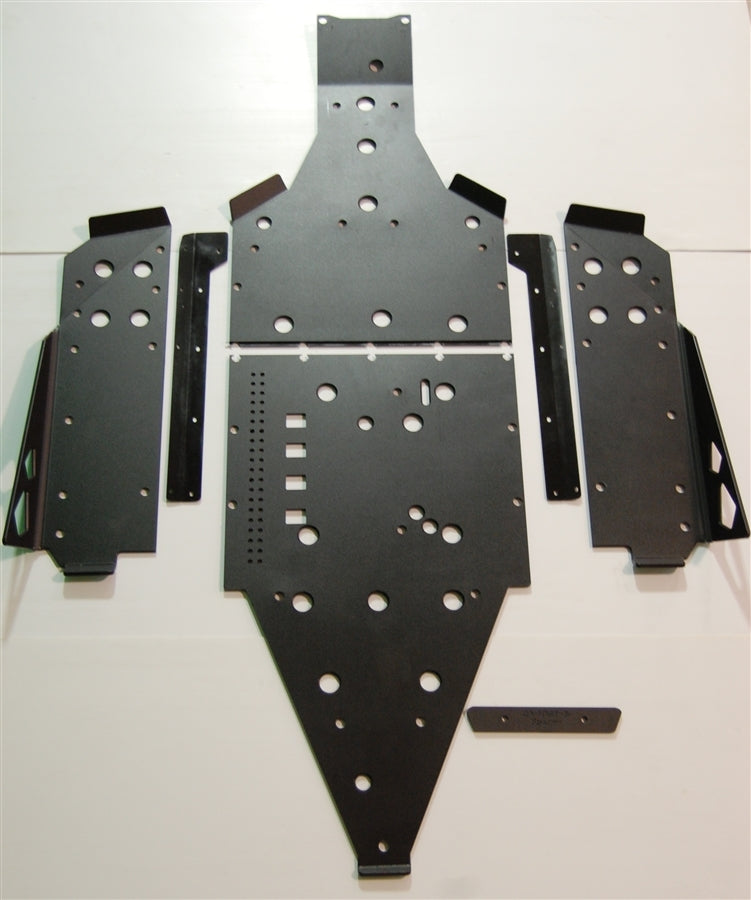 Get the best in under vehicle protection with Trail Armor's full skid plate set for the Trail Armor Can Am Maverick X DS Turbo (2015 - 2016), Can Am Maverick X RS Turbo (2016), Can Am Maverick Turbo (2016 - 2017) and Can Am Maverick X DS (non turbo 2015 - 2016) Full Skids with Slider Nerfs. Made from 1/2" supertough polymer, these skids are lighter than most traditional metal/aluminum skid plates and because they have no "impact memory", they absorb shocks to the bottom of your vehicle without the dents, galling and corrosion of metal/aluminum skids. Trail Armor was the first in the industry to design skids with the formed leading edges (front and rear) featured on our skid plates. These leading edges protect vulnerable frame edges and wheel wells from blunt edge impacts and act as a starting edge to slide over obstacles without the resistance and drag of metal skid plates. Additionally,Trail Armor skids are designed with extended side panels bent to serve as slider nerfs which protect the vulnerable sides and rocker panels of your vehicle. Compare Trail Armor's skid set coverage with other skid manufacturer's like items - slider nerfs are either sold separately or the bottom skid coverage ends before the rocker panel, leaving this part of your vehicle unprotected. Trail Armor's skid plates come in easy to install panels that cover the full length and breadth of the vehicle, including the front and rear differential. Access holes to service points and oil drains make maintenance a breeze. Strategically placed drain holes allow dirt and debris to wash out - you don't have to remove them to clean out the belly your vehicle. However, if needed, individual panels may be removed to access different areas without removing the entire skid plate. Recessed mounting holes protect fasteners from damaging blows and keeping all bolt heads from protruding the skid's surface. All kits come with corrosion resistant hardware and photo-documented installation instructions. Installation videos, if available, are provided as a YouTube video on our site. COLORS ARE CONSIDERED A SPECIAL ORDER AND ARE NON-RETURNABLE. THEY ARE NOT PIGMENT MATCHED TO ANY OEM MANUFACTURER'S COLOR SCHEME. PLEASE CONTACT US FOR ANY QUESTIONS ON MATCHING OR BLENDING WITH YOUR VEHICLE'S PLASTIC AND/OR GRAPHICS.