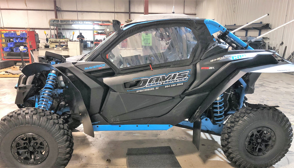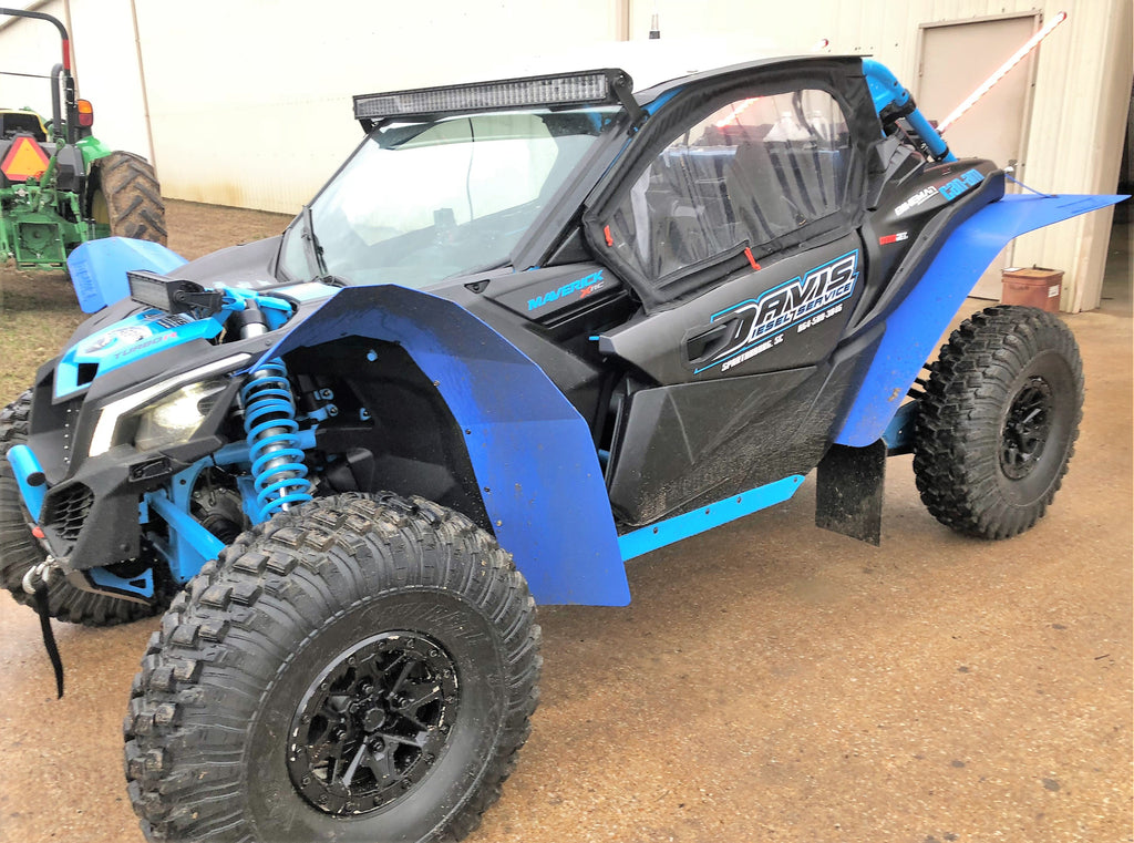 Extends the factory fender of the 2017 - 2025 Can Am Maverick X3 X RC, Maverick X3 X RS Turbo R, Maverick X3 X MR Turbo R, Maverick X3 Max X RS Turbo R, Maverick X3 Max X MR Turbo R and Maverick Max X RC Mud Flap Fender Extensions to protect you from mud splash. Greater coverage in the rear than other mud flaps on the market.