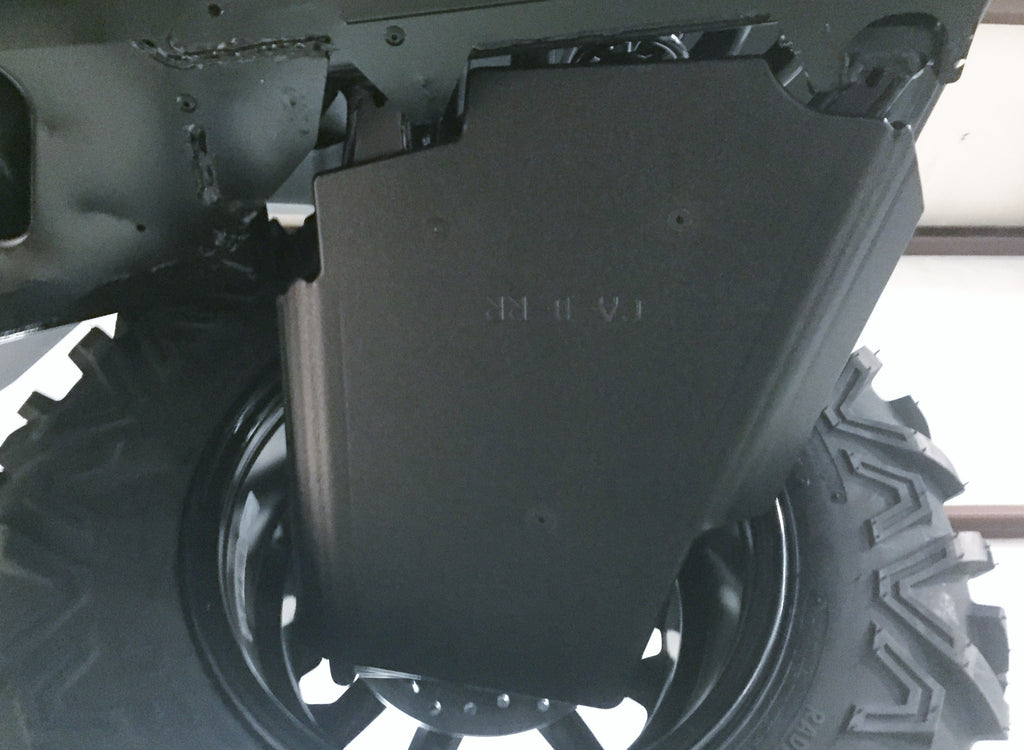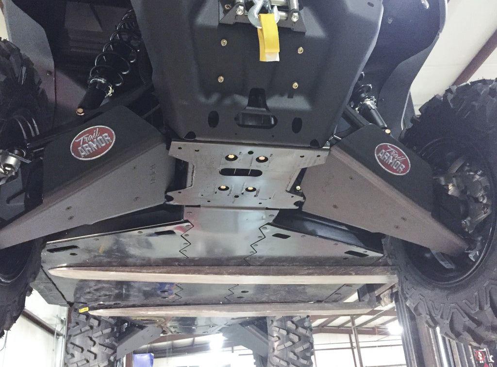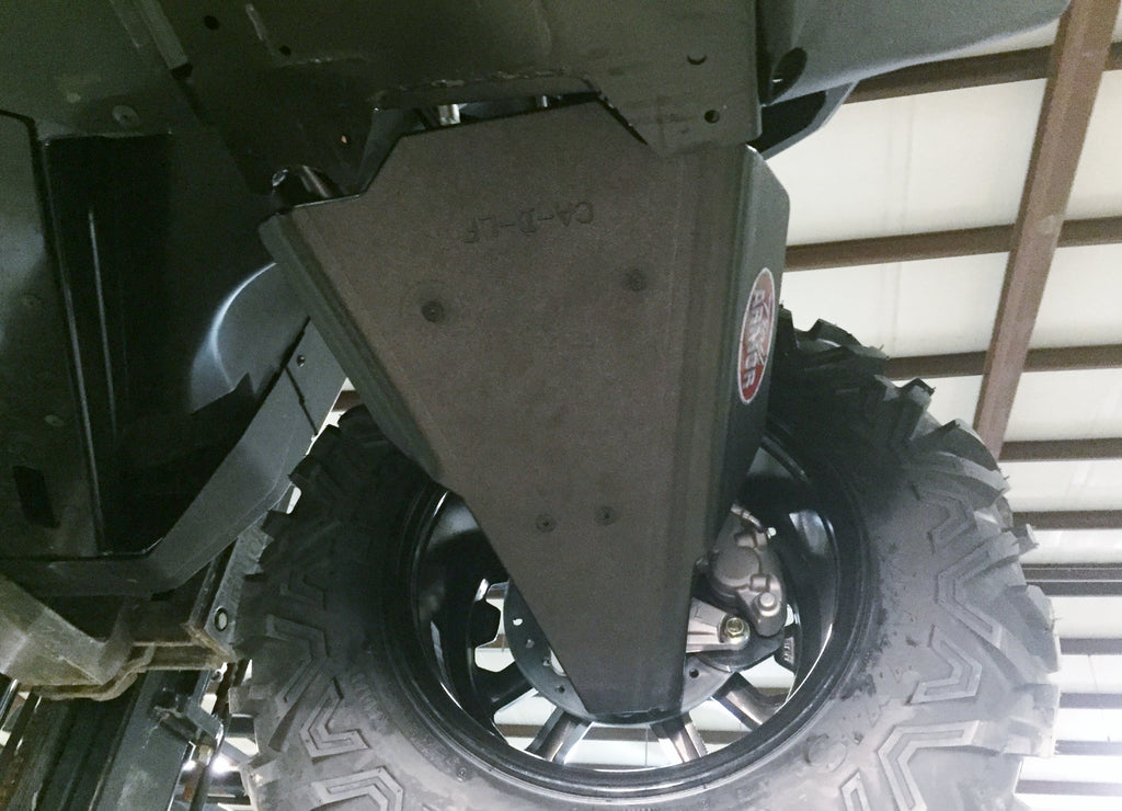 Break bad on the trail, ride the most buggy-busting terrain you can find - Trail Amor's a-arm guards for the Can Am Defender and Defender Max can take the iMPACT! Made of the same 1/2" Supertough polymer we make our skid plates out of, these are by far the toughest, best designed and coolest a-arms on the market. Guards have three sided protection of your front and rear CV boots - front, rear and bottom - and mount easily with no drilling required. All mounting hardware and simple photo-documented installation instructions are included. WILL FIT THE STRAIGHT A-ARM GUARDS ONLY, WILL NOT FIT THE FACTORY ARCHED A-ARM GUARDS. SEE ALSO FITS IN GALLERY FOR FULL LIST OF MAKE AND MODEL FITMENTS. These front A-arm guards are not large enough to engrave upon and so have a Trail Armor logo sticker. Picture of tri-colored guards below are to show what the colored edges will look like. Colors are considered a special order and are non-returnable.
