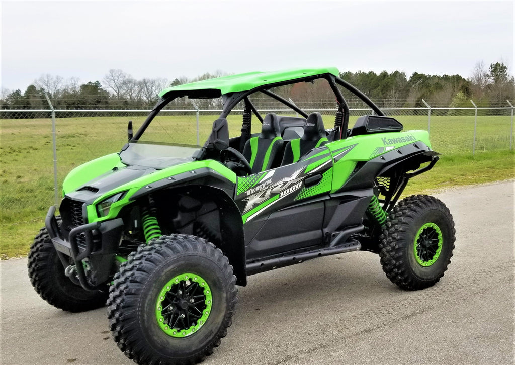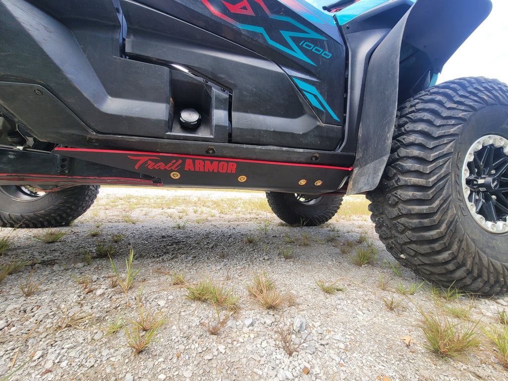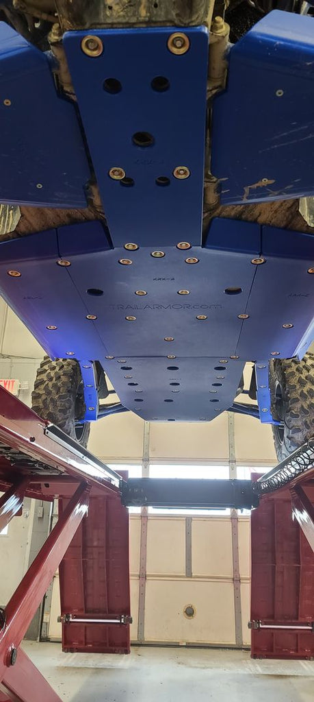 Experience exceptional underbody protection with Trail Armor’s full skid plate set designed for the 2023 - 2025 Kawasaki KRX 1000 (all editions). Constructed from 1/2" Super Tough polymer, these skids are lighter than conventional metal or aluminum plates and absorb impacts without corrosion or galling thanks to their lack of "impact memory." Trail Armor pioneered the use of formed front leading edges that shield sensitive frame corners and wheel wells, enabling smooth obstacle traversal without the drag associated with metal skids. The integrated extended side skid plates offer enhanced protection to vulnerable side panels, surpassing competitor coverage where such plates are often sold separately or missing. Panels are modular and cover the full underside including front and rear differentials. Convenient access holes for maintenance and strategically placed drain holes keep debris from accumulating without removal of the skids. Recessed mounting holes safeguard fasteners from damage and ensure a flush surface. The kits come with corrosion-resistant hardware, comprehensive photo instructions, and two Panel A options—one designed for use with a bumper and the other offering enhanced skid protection at the front of the vehicle. Some OEM hardware may be reused. Note: A-arm guards shown in images are sold separately (part numbers TA012ARMIMPFG-KAW-KRX and TA012IMPTAG-KAW-KRX). Custom colors are special order, non-returnable, and not matched to OEM hues. Refer to the Fitment Guide for exact model compatibility.