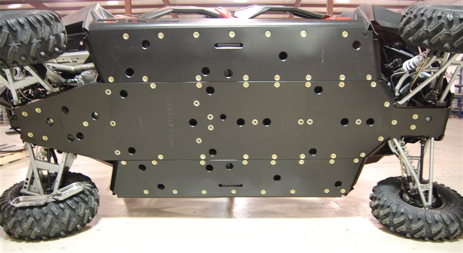 Get the best in under vehicle protection with Trail Armor's full skid plate set for the RZR 4 900, RZR S 4 900 and RZR S 4 1000. Made from 1/2" supertough polymer, these plastic skids absorb shock to the bottom of the vehicle with no dents or rust and are lighter than traditional metal skids. Strategically placed drain holes allow dirt and debris to wash out - you don't have to remove them to clean out the belly your vehicle. They come in easy to install lap jointed sections that cover the full length and breadth of the vehicle, including the front and rear differential. Recessed mounting holes protect mounting hardware from damage. Bumpers will mount to outside of skid plate with customer-provided longer bolts. Colors shown on 2 seater vehicles for illustration purposes only. Standard slider option = Trail Armor's extended side panels that roll up the side of the vehicle to serve as nerf sliders. Protects the bottom and sides of the rocker panels of your vehicle. Will work with Pure Polaris Low Pro Rock Sliders (sold separately).Trimmed slider option = Trail Armor's sliders cover the bottom of the rocker panel. Will work with Pure Polaris Extreme Kick-Out Steel Rock Sliders (sold separately). Please specify Option for sliders. Mounting hardware and instructions included. Ships UPS ground - no truck line needed! See ALSO FITS chart in gallery for specific year and model fitment. Colors are considered a special order and are non-returnable. Please contact us if you have a question about colors and your graphics package.