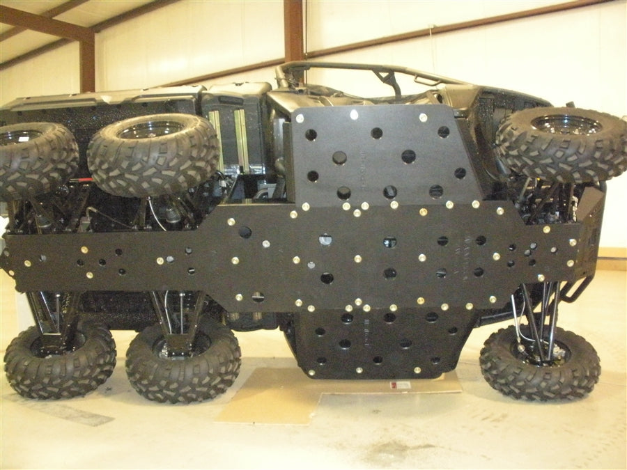 Get the best in under vehicle protection with Trail Armor's full skid plate set for the Polaris Ranger 6x6 2010 - 2017. Made from 1/2" supertough polymer, these plastic skids absorb shock to the bottom of the vehicle with no dents or rust and are lighter than traditional metal skids. Strategically placed drain holes allow dirt and debris to wash out - you don't have to remove them to clean out the belly your vehicle. They come in easy to install jointed sections that cover the full length and breadth of the vehicle, including the front and rear differential. Extended side panels serve as nerf sliders protecting the sides and rocker panels of your vehicle. Mounting hardware and instructions included.