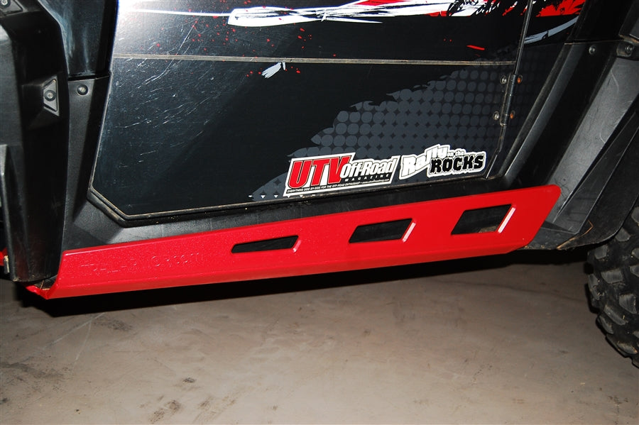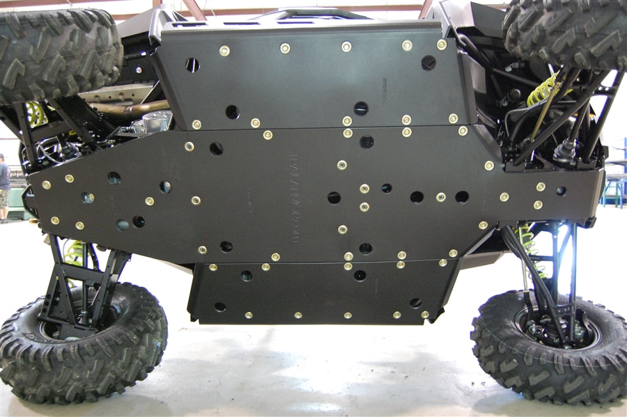 Get the best in under vehicle protection with Trail Armor's full skid plate set for the Polaris 2015 - 2017 RZR 900 EPS XC, 2015 - 2019 RZR 900 EPS Trail, RZR 900, RZR S 900, RZR S 900 EPS, RZR S 1000 EPS, 2020 RZR Trail 900, RZR Trail 900 Premium, RZR Trail S 900, RZR Trail S 900 Premium, RZR Trail S 1000. Made from 1/2" plastic polymer, these plastic skids absorb shock to the bottom of the vehicle with no dents or rust and are lighter than traditional metal skids. Strategically placed drain holes allow dirt and debris to wash out - you don't have to remove them to clean out the belly your vehicle. They come in easy to install jointed sections that cover the full length and breadth of the vehicle, including the front and rear differential. Bumpers will mount to outside of skid plate with customer-provided longer bolts. COLORS ARE CONSIDERED A SPECIAL ORDER AND ARE NON-RETURNABLE. THEY ARE NOT PIGMENT MATCHED TO ANY OEM MANUFACTURER'S COLOR SCHEME. PLEASE CONTACT US FOR ANY QUESTIONS ON MATCHING OR BLENDING WITH YOUR VEHICLE'S PLASTIC AND/OR GRAPHICS. Please specify Option for sliders: STANDARD SLIDERS = Trail Armor's extended side panels that roll up the side of the vehicle to serve as nerf sliders. Protects the bottom and sides of the rocker panels of your vehicle. Will work with Pure Polaris Low Pro Rock Sliders (sold separately). TRIMMED SLIDERS THAT WORK WITH PURE POLARIS EXTREME KICK OUT NERF BARS = Trail Armor sliders that are trimmed so that they do not roll up the side of the vehicle but protrude the rocker panels approximately 1/2" - 3/4" to protect the bottom of your rocker panels. Designed to work with Pure Polaris extreme kick out nerf bars (sold separately). Mounting hardware and instructions included. Ships UPS ground - no truck line needed! See ALSO FITS chart in gallery for specific year and model fitment.