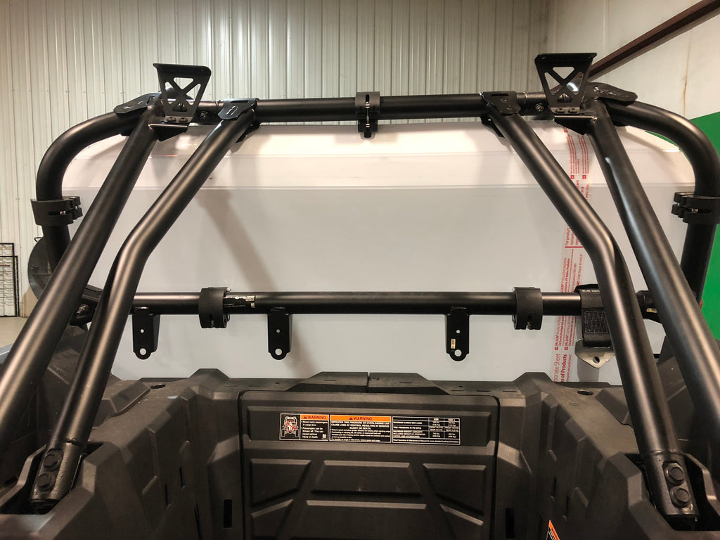 Trail Armor’s Rear Window Dust Shield kit provides the most effective barrier for keeping cargo, dust and debris out of the cab of your Polaris 2019 - 2021 RZR 4 XP Turbo S, 2019 - 2021 RZR 4 Turbo S Velocity, 2018 - 2021 RZR XP Turbo S, 2019 - 2021 Turbo S Velocity 2021 RZR XP Turbo S and RZR 4 XP Turbo S Lifted Lime LE. This rear windshield is made from ¼” thick (not 3/16” or 1/8”) clear polycarbonate, making it the strongest and most durable rear window on the market. Unlike some of the other rear windows on the market, Trail Armor’s Rear Window Dust Shield kit has a UV protective coating on the exterior of the window to inhibit yellowing. Additionally, instead of just fitting between the roll cage bars (leaving sizable gaps between the shield and the bars), Trail Armor’s Rear Window Dust Shield kit overlays the roll cage bars for a professional, tight fit as a cab back – essential when used as part of a full cab enclosure for those winter rides - and will not interfere with hard or soft tops. It will not interfere with any bed function and will accommodate seat belt harness straps. Like all Trail Armor windshields, skids and debris shields, this Rear Window Dust Shield kit is cut with a CNC 5-axis router to ensure a smooth-edged, accurately cut product every time. Trail Armor’s Rear Window Dust Shield Kit for the Polaris 2019 - 2021 RZR 4 XP Turbo S, 2019 - 2021 RZR 4 Turbo S Velocity, 2018 - 2021 RZR XP Turbo S, 2019 - 2021 Turbo S Velocity 2021 RZR XP Turbo S and RZR 4 XP Turbo S Lifted Lime LE is easy to install and features Trail Armor's fast clamps. Kit comes with all mounting hardware and detailed, photo-documented instructions.
