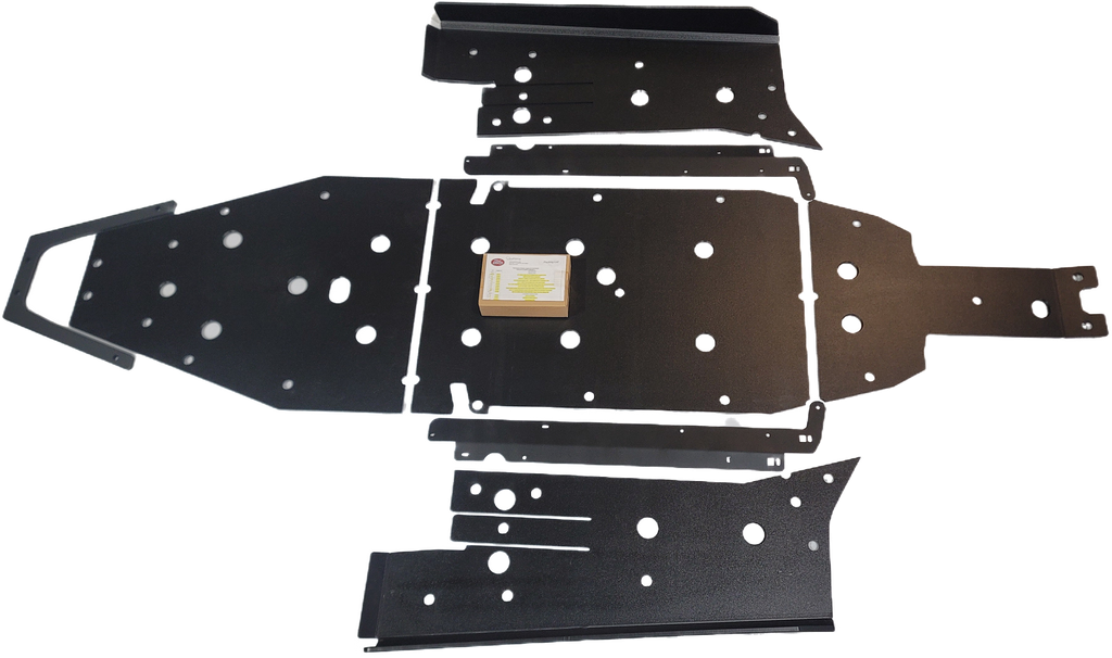 Protect your 2022 - 2024 Polaris Turbo R with Trail Armor’s full skid plate set, crafted from 1/2" super tough polymer. These skids offer excellent shock absorption, long-lasting surface durability without rust, and are lighter than metal counterparts. Drain holes are positioned to let debris wash away easily without removal. The kit includes multiple sections covering the underside, including front and rear differentials, with access points for servicing grease fittings and oil drains. Choose between Standard Sliders for extended rocker panel coverage or Trimmed Sliders, compatible with Pure Polaris Rock Sliders. Installation hardware and instructions are included. Some factory hardware may be reused. Shipping is via UPS ground with applicable large package fees. Color options are special order and non-returnable. These sliders do not feature any engraving—the included tri-color image illustrates the color contrast. Front A-arm Guards, Trailing Guards and Mud Flaps displayed here are available for purchase separately. Refer to Product #'s TA012ARMIMPFG-PROR, TA012IMPTAG-TURBOR, TAMFFE-PROXP for details. Consult the Fitment Guide for exact vehicle compatibility.