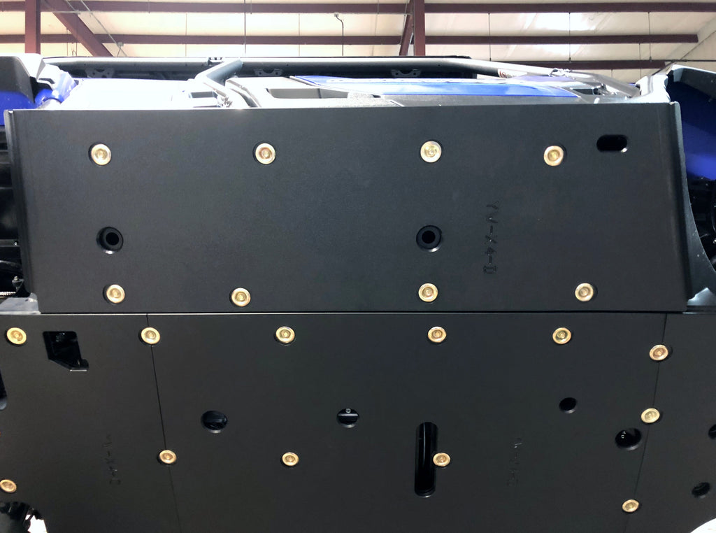 Get the best in under vehicle protection with Trail Armor's full skid plate set for the Yamaha Woverine 850 X4 (2018 - 2022), X4 850 Hunter, X4 850 Special Edition (2018 - 2020), X4 850 SE (2019), X4 850 XTR (2020 - 2024) and X4 850 R-Spec (2021 - 2024). Made from Super Tough polymer, these 1/2" plastic skids are lighter than most traditional metal/aluminum skid plates (see specs below) and because they have no "impact memory", they absorb shocks to the bottom of your vehicle without the dents, galling and corrosion of metal/aluminum skids. Trail Armor was the first in the industry to design skids with the formed leading edges (front and rear) featured on our skid plates. These leading edges protect vulnerable frame edges and wheel wells from blunt edge impacts and act as a starting edge to slide over obstacles without the resistance and drag of metal skid plates. Additionally, these skids for the Wolverine X4 are designed side panels that extend approximately a 1/2" past the rocker panels to protect the vulnerable sides and rocker panels of your vehicle. Compare Trail Armor's skid set coverage with other skid manufacturer's like items - slider nerfs are either sold separately or the bottom skid coverage ends before the rocker panel, leaving this part of your vehicle unprotected. Trail Armor's skid plates come in easy to install panels that cover the full length and breadth of the vehicle, including the front and rear differential. Access holes to service points and oil drains make maintenance a breeze. Strategically placed drain holes allow dirt and debris to wash out - you don't have to remove them to clean out the belly your vehicle. However, if needed, individual panels may be removed to access different areas without removing the entire skid plate. Recessed mounting holes protect fasteners from damaging blows and keeping all bolt heads from protruding the skid's surface. All kits come with corrosion resistant hardware and photo-documented installation instructions. Installation videos, if available, are provided as a YouTube video on our site. A-Arm guards if shown installed in pictures are not included and sold separately. Colors are considered a special order. They cannot be cancelled once ordered or returned. If you have any questions about colors and your graphics, please contact us and we'll give you our honest opinion. See Also Fits Chart in Gallery for specific year and model fitment.