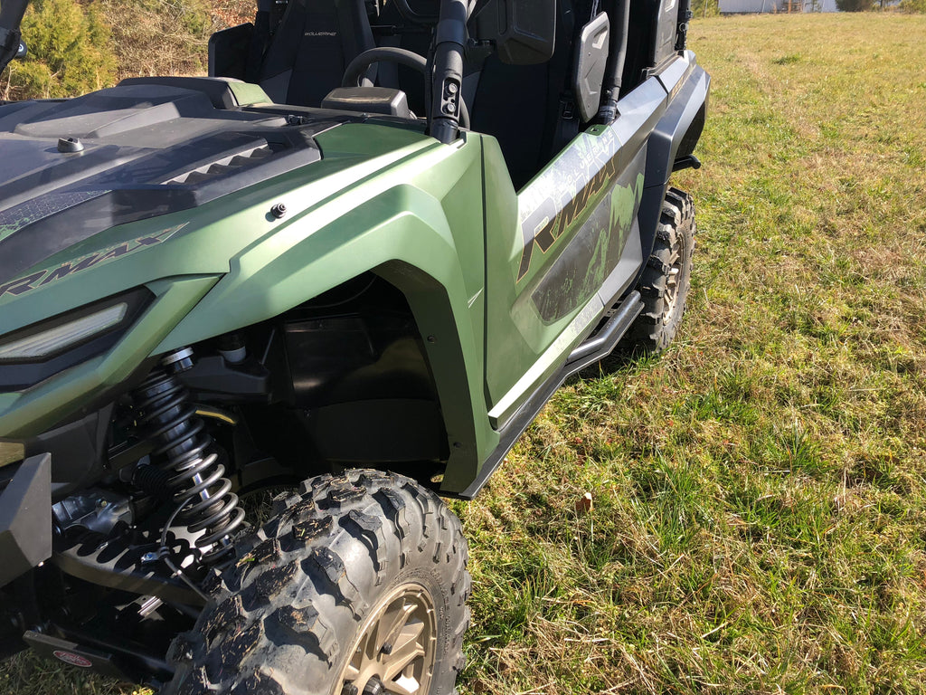 Get the best in under vehicle protection with Trail Armor's full skid plate set for the Yamaha Wolverine RMAX4 1000 Compact, RMAX4 1000 Compact X-TR, and RMAX4 Compact 1000 Limited Edition. Will not fit the 2025 RMAX4 with a dump bed. See part number TA012FULLSKID-YW-RMAX4.  Made from Super Tough polymer, these 1/2" plastic skids are lighter than most traditional metal/aluminum skid plates and because they have no "impact memory", they absorb shocks to the bottom of your vehicle without the dents, galling and corrosion of metal/aluminum skids. Additionally, these skids for the RMAX4 are designed side panels that extend approximately a 1/2" past the rocker panels to protect the vulnerable sides and rocker panels of your vehicle. Compare Trail Armor's skid set coverage with other skid manufacturer's like items - slider nerfs are either sold separately or the bottom skid coverage ends before the rocker panel, leaving this part of your vehicle unprotected. Trail Armor's skid plates come in easy to install panels. They install directly over the existing metal factory skid plate. Access holes to service points and oil drains make maintenance a breeze. Strategically placed drain holes allow dirt and debris to wash out - you don't have to remove them to clean out the belly your vehicle. However, if needed, individual panels may be removed to access different areas without removing the entire skid plate. Recessed mounting holes protect fasteners from damaging blows and keeping all bolt heads from protruding the skid's surface. All kits come with corrosion resistant hardware and photo-documented installation instructions. Installation videos, if available, are provided as a YouTube video on our site. A-Arm guards and bash plate if shown installed in pictures are not included with this skid set but are sold separately. See part numbers TA011ARMIMP-YW-RMAX4 and TA-YW-RMAX-BASH. Colors are not matched to any OEM graphic package. Colors are considered a special order and are non-returnable.