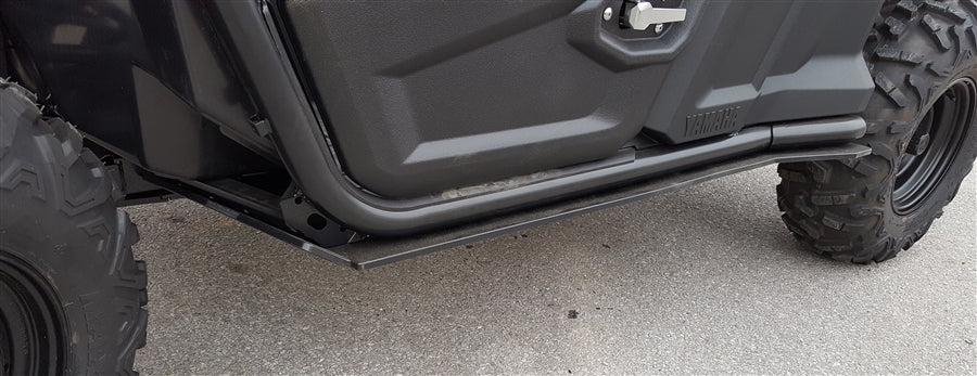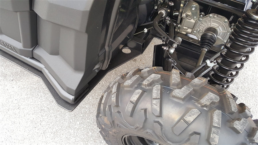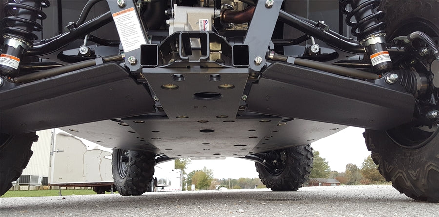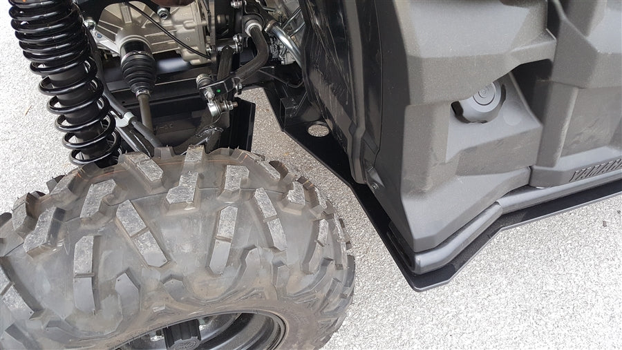 Get the best in under vehicle protection with Trail Armor's full skid plate set for the Yamaha Wolverine, Wolverine R-Spec, and Wolverine R-Spec EPS. Made from our own custom blend of ultra high molecular weight polymer, these 1/2" plastic skids are lighter than most traditional metal/aluminum skid plates (see specs below) and because they have no "impact memory", they absorb shocks to the bottom of your vehicle without the dents, galling and corrosion of metal/aluminum skids. Trail Armor was the first in the industry to design skids with the formed leading edges (front and rear) featured on our skid plates. These leading edges protect vulnerable frame edges and wheel wells from blunt edge impacts and act as a starting edge to slide over obstacles without the resistance and drag of metal skid plates. Additionally, these skids for the Wolverine are designed side panels that extend approximately a 1/2" past the rocker panels to protect the vulnerable sides and rocker panels of your vehicle. Compare Trail Armor's skid set coverage with other skid manufacturer's like items - slider nerfs are either sold separately or the bottom skid coverage ends before the rocker panel, leaving this part of your vehicle unprotected. Trail Armor's skid plates come in easy to install panels that cover the full length and breadth of the vehicle, including the front and rear differential. Access holes to service points and oil drains make maintenance a breeze. Strategically placed drain holes allow dirt and debris to wash out - you don't have to remove them to clean out the belly your vehicle. However, if needed, individual panels may be removed to access different areas without removing the entire skid plate. Recessed mounting holes protect fasteners from damaging blows and keeping all bolt heads from protruding the skid's surface. All kits come with corrosion resistant hardware and photo-documented installation instructions. Installation videos, if available, are provided as a YouTube video on our site. A-Arm guards if shown installed in pictures are not included and sold separately. Fits years 2016 - 2018.