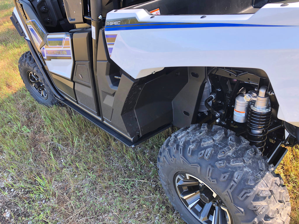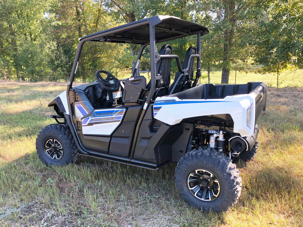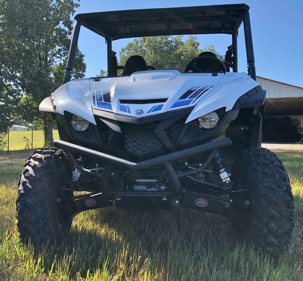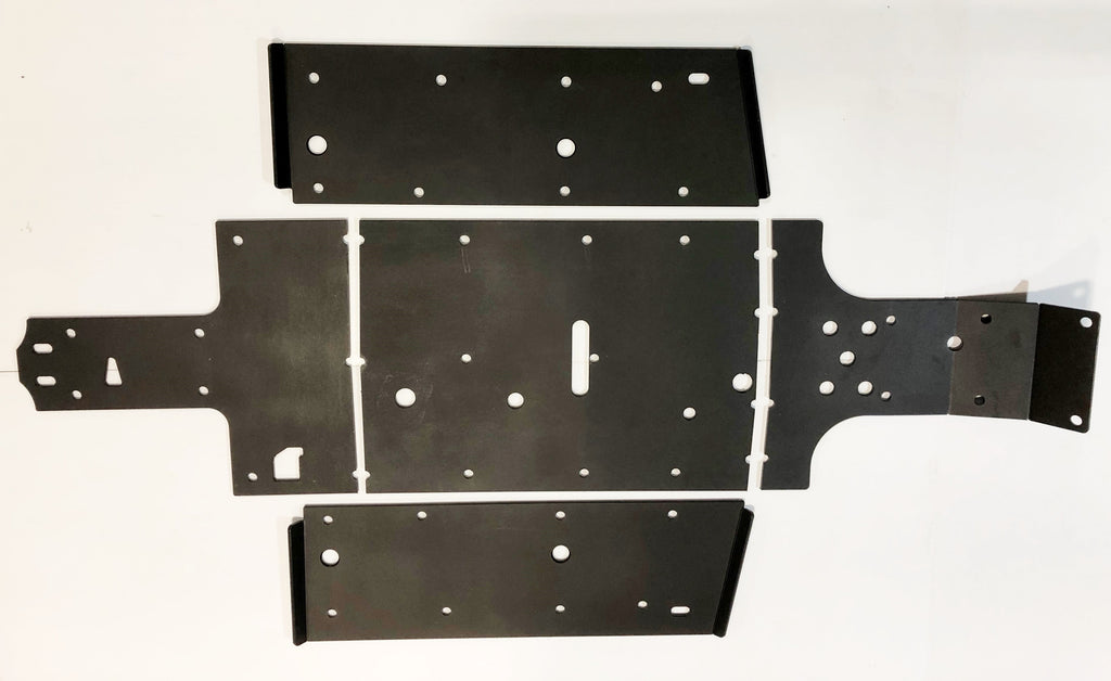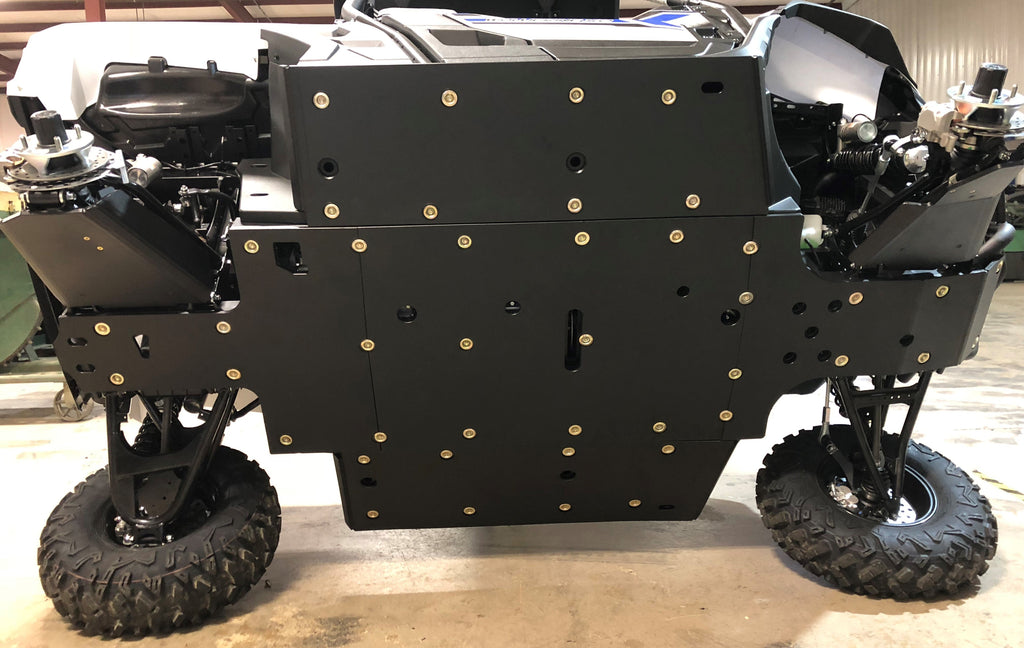 Get the best in under vehicle protection with Trail Armor's full skid plate set for the Yamaha Wolverine X2 850 (2019 - 2022), X2 850 R-Spec (2019 - 2024), X2 850 EPS (2020), X2 850 XT-R (2020 - 2024), X2 1000 R-Spec (2024), X2 1000 XT-R (2024). Made from Super Tough polymer, these 1/2" plastic skids are lighter than most traditional metal/aluminum skid plates and because they have no "impact memory", they absorb shocks to the bottom of your vehicle without the dents, galling and corrosion of metal/aluminum skids. Trail Armor was the first in the industry to design skids with the formed leading edges (front and rear) featured on our skid plates. These leading edges protect vulnerable frame edges and wheel wells from blunt edge impacts and act as a starting edge to slide over obstacles without the resistance and drag of metal skid plates. Additionally, these skids for the Wolverine X2 are designed side panels that extend approximately a 1/2" past the rocker panels to protect the vulnerable sides and rocker panels of your vehicle. Compare Trail Armor's skid set coverage with other skid manufacturer's like items - slider nerfs are either sold separately or the bottom skid coverage ends before the rocker panel, leaving this part of your vehicle unprotected. Trail Armor's skid plates come in easy to install panels that cover the full length and breadth of the vehicle, including the front and rear differential. Access holes to service points and oil drains make maintenance a breeze. Strategically placed drain holes allow dirt and debris to wash out - you don't have to remove them to clean out the belly your vehicle. However, if needed, individual panels may be removed to access different areas without removing the entire skid plate. Recessed mounting holes protect fasteners from damaging blows and keeping all bolt heads from protruding the skid's surface. All kits come with corrosion resistant hardware and photo-documented installation instructions. Installation videos, if available, are provided as a YouTube video on our site. A-Arm guards if shown installed in pictures are not included and sold separately. Colors are considered a special order. They cannot be cancelled once ordered or returned. If you have any questions about colors and your graphics, please contact us and we'll give you our honest opinion. See Also Fits Chart in Gallery for specific year and model fitment.