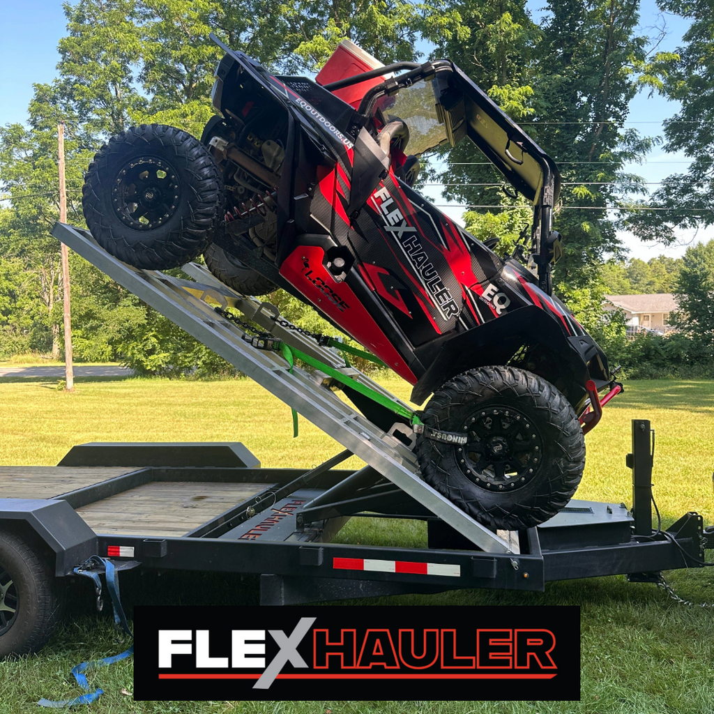 SPACE-SAVING DESIGN. The FLEX HAULER features a revolutionary hydraulic lift system for the front side-by-side.