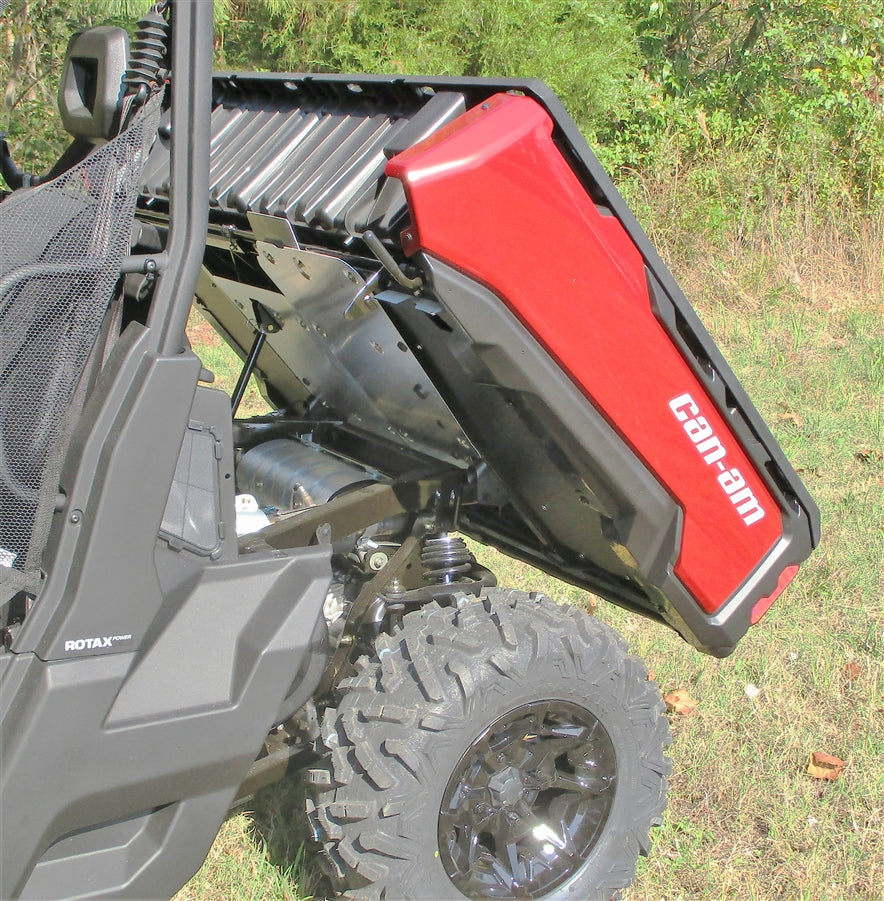 Tired of your tires caking mud in that impossible-to-clean honeycomb under your Can Am Defender and Defender Max's dump bed? Trail Armor's under bed mud shields fit over those problem areas on the underside of your bed above the tires to keep the mud out. Made from 1/8" (.125") thick plastic, these panels are custom cut to fit on your bed underside (above the tires) and will not interfere with dumping capability or function of factory heat shield. Fits Can Am Defender HD5, Defender HD7, Defender HD8, Defender HD9, Defender HD10, Defender MAX HD7, Defender MAX HD8, Defender MAX HD9, Defender MAX HD10, Defender X MR, Defender DPS, Defender XT, Defender XT CAB, Defender XT-P 2016 - 2013.